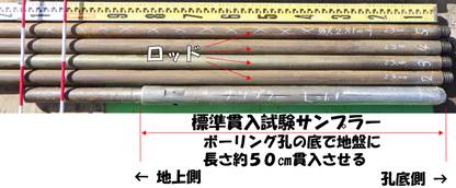 計測した打撃回数は地盤の状態を評価するための目安に用いられます。