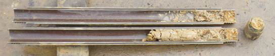 写真8.長野県中部、犀川流域の山間地で行った調査ボーリングのコア